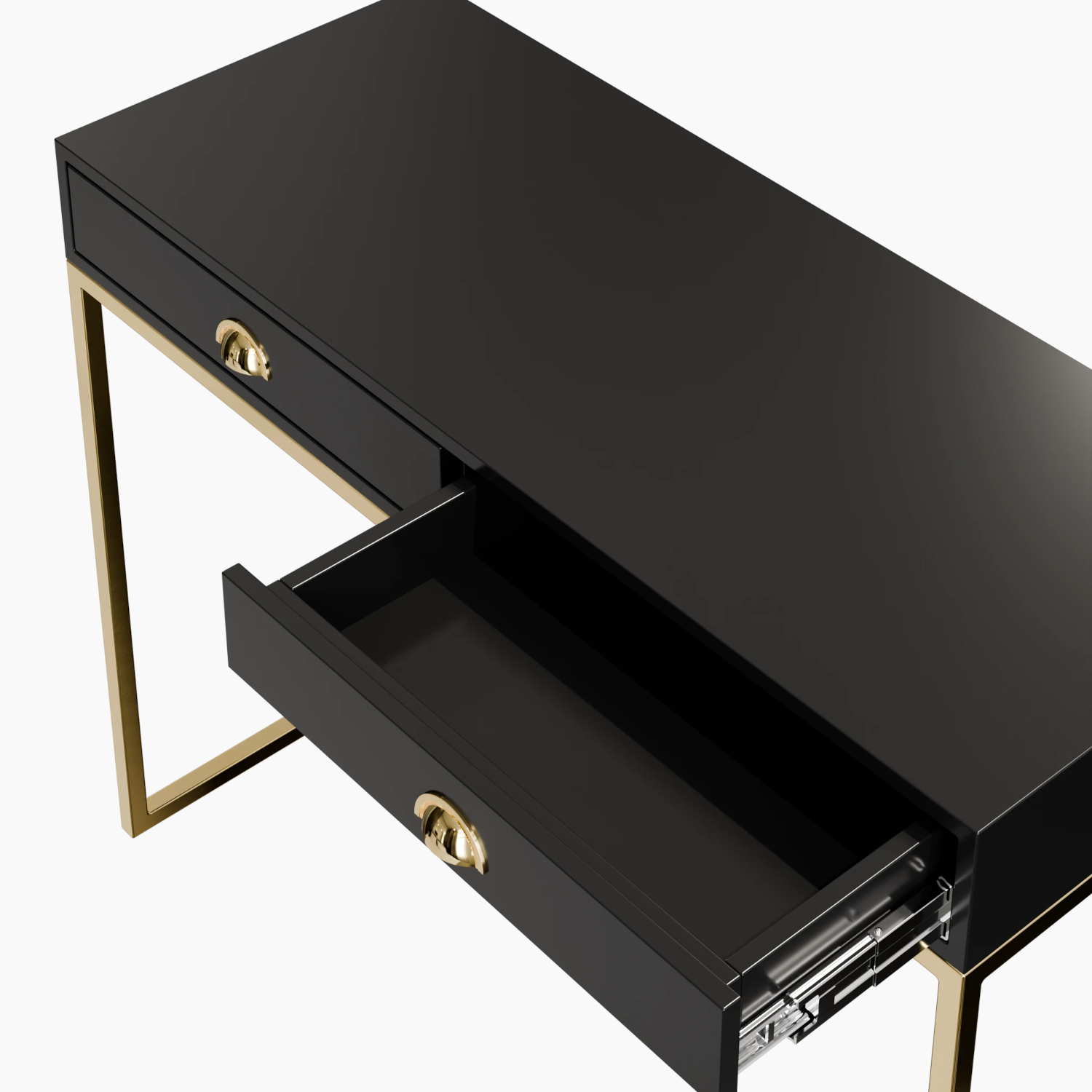 • Estrutura do tampo em MDF com acabamento em laca e recoberto com vidro 4mm na mesma cor da laca.