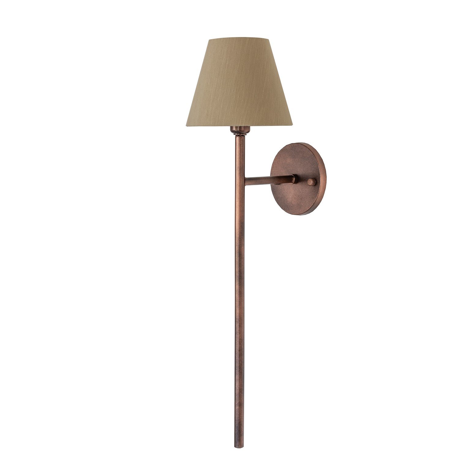 Arandela decorativa com estrutura metálica em aço carbono e cúpula em tecido.