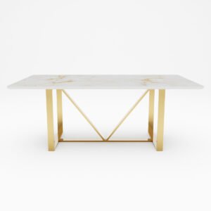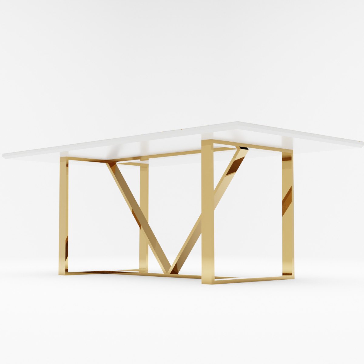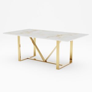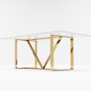 A Mesa de Jantar Versailles possui um design contemporâneo e luxuoso, fabricada com estrutura em aço inoxidável.