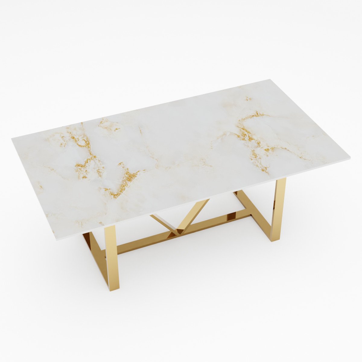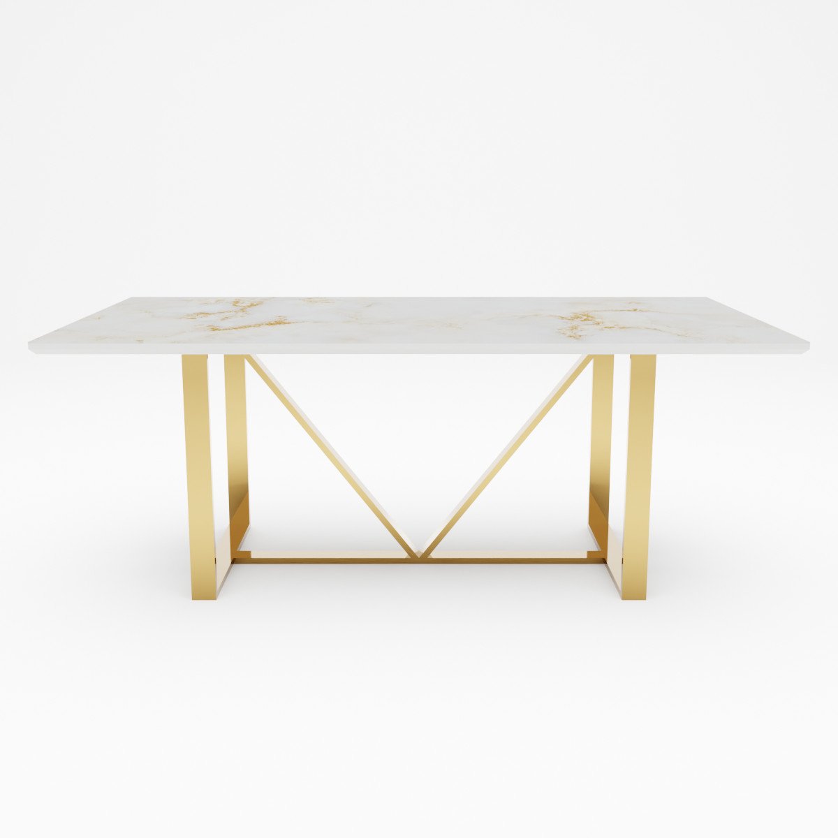 A Mesa de Jantar Versailles possui um design contemporâneo e luxuoso, fabricada com estrutura em aço inoxidável.